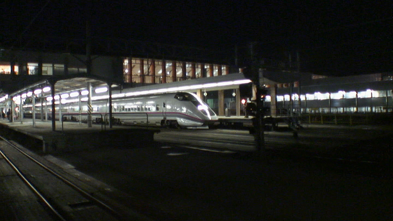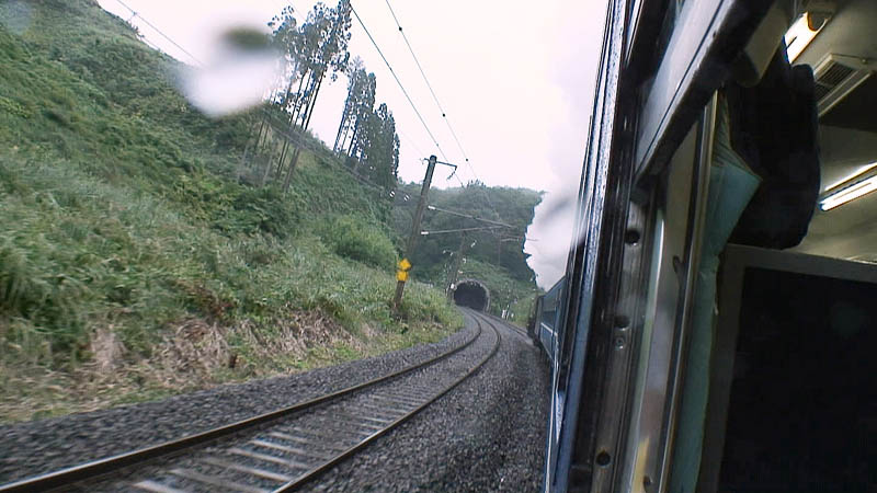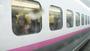 これからこまちと並走します」という車内アナウンスがあり、数分して後からこまちが。こまちの乗客達にアナウンスがあったかどうかはわからないが、皆、一様に驚いた表情だった。 |