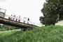 橋の堤防・記念碑のところです。知ってる人、いませんか? |