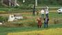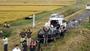 果樹園が多く見られるようになります。仕事の合間に手を振ってくれてるのかな。 |