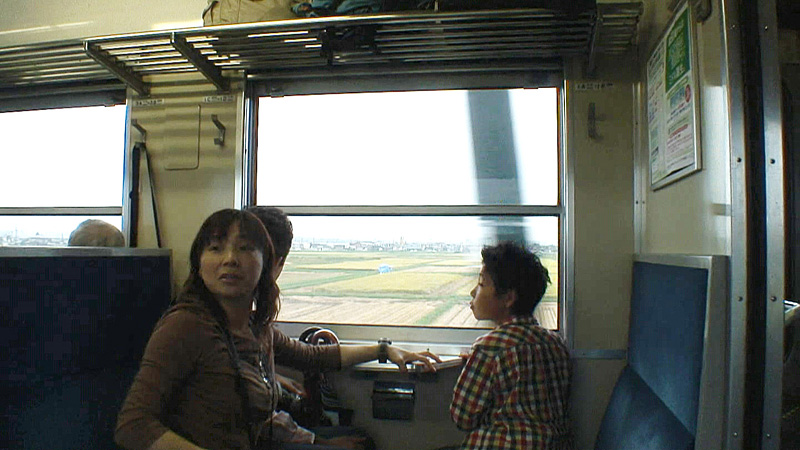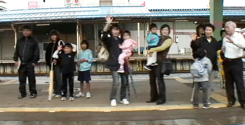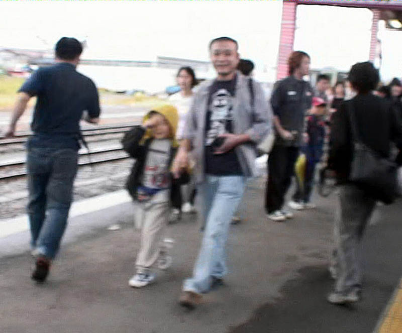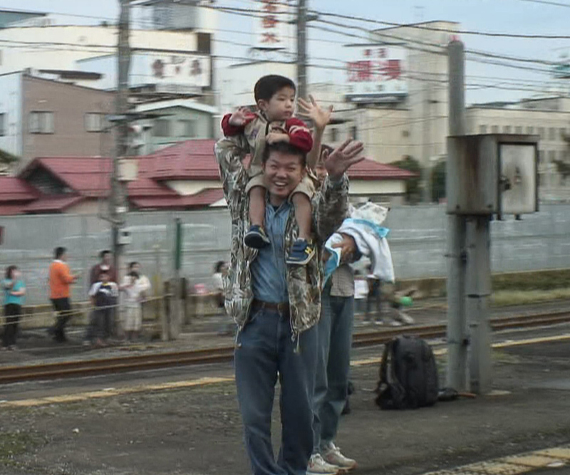 横手で下車したTさん家族。私達を見つけてくれました。 |