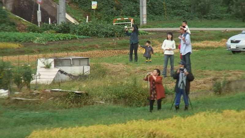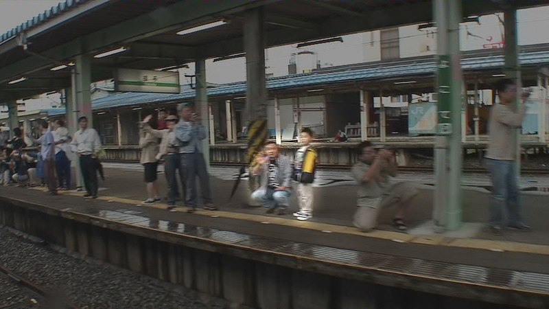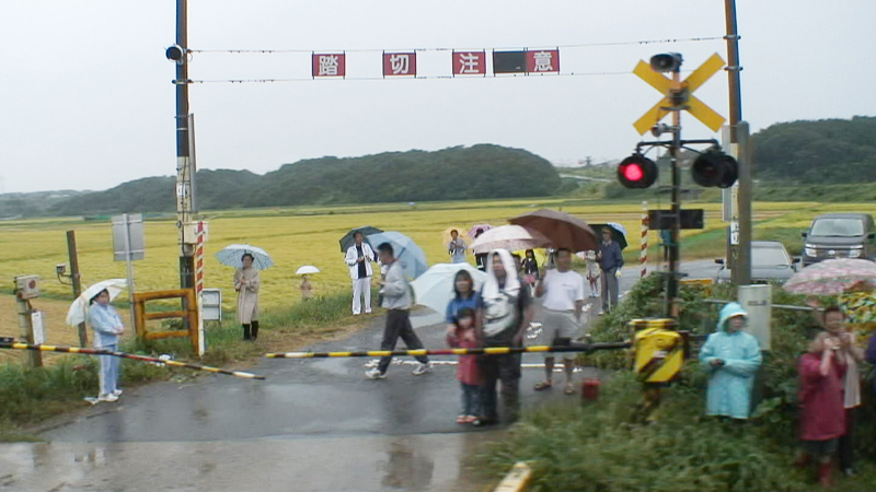 踏切でデゴイチを見守る人達(四ツ小屋付近・進行方向、向かって左) |