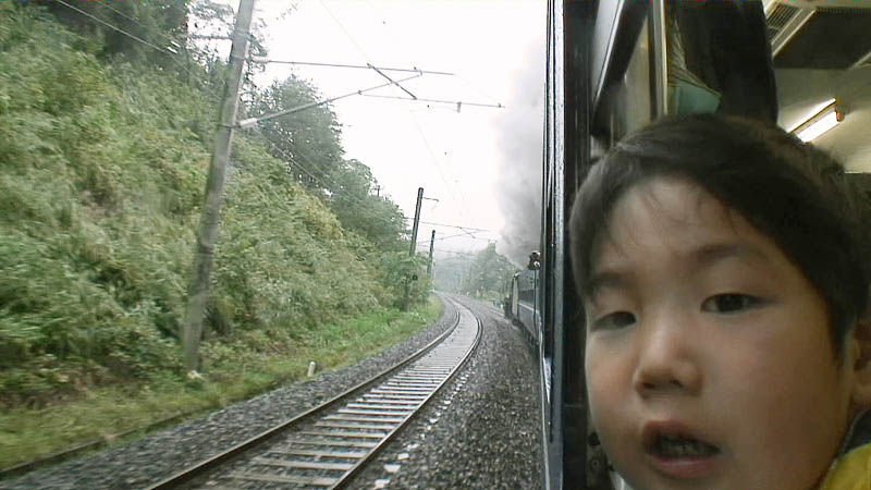 煙が目に入るとけっこう痛かったりします(^_^;) このころ、息子と車体についたススをお互いの顔に塗ったりして遊んでいました。(帰るとき、そのことをすっかり忘れてしまい、みんなに変な顔で見られました(笑)) |