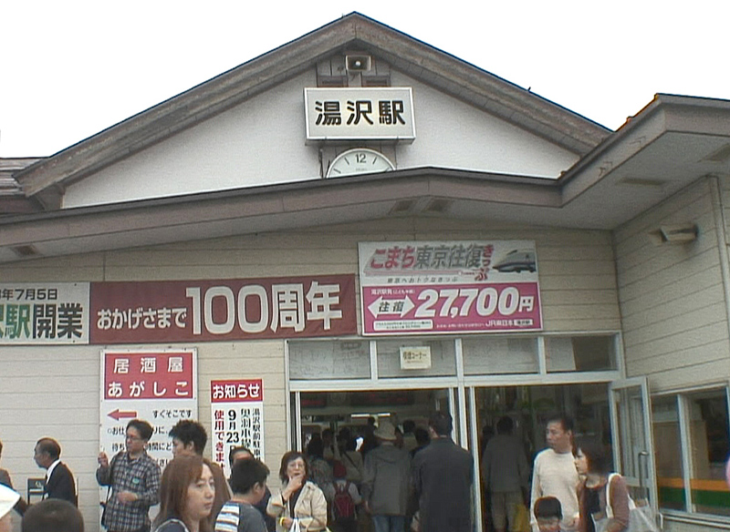 終点の湯沢駅はとても小さいので、SLから降りた人達でごった返し |