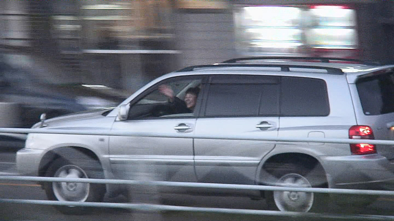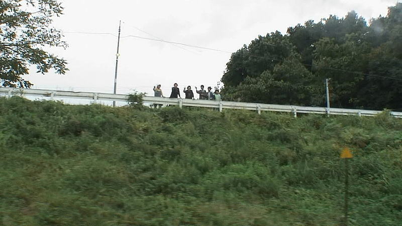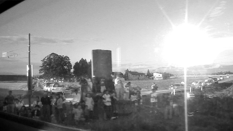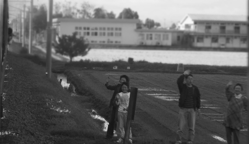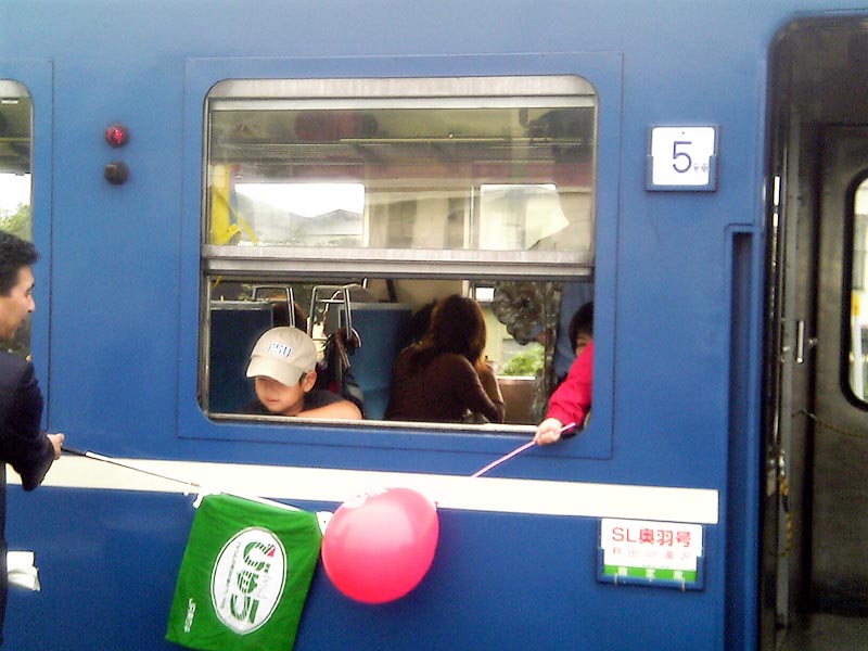 車の中から手を振る人。自分も幼い頃、羽越線でSLを見ると必ず手を振ってたなあ。 |